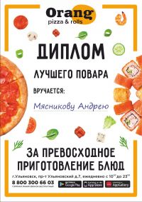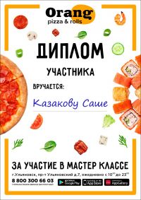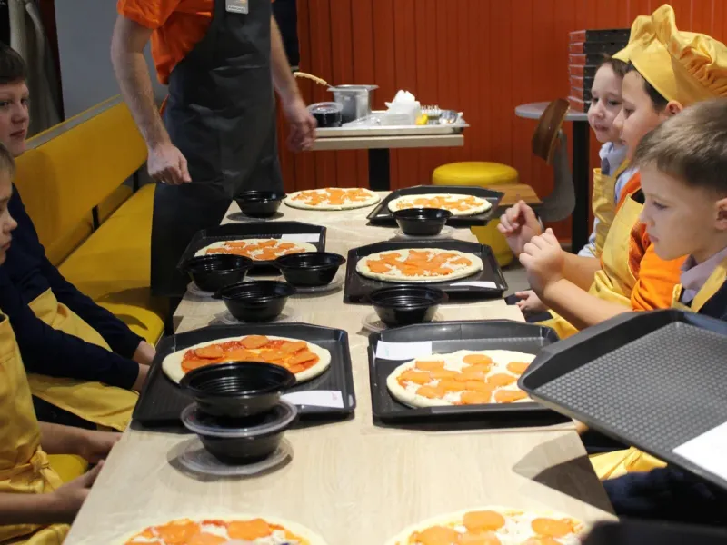Мы сегодня всем классом были у Вас на мастер-классе по изготовлению пиццы! Полный восторг у детей и родителей. Ребята-повара отлично справились с задачей: привлекли внимание детей, понятно объяснили, что делать, показали как делать и каждому помогли. Яркие фартуки и колпаки дополнили атмосферу уютной кухни, где всё по-домашнему.